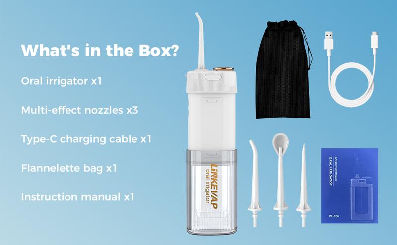 LINKEVAP Mini Water Flosser & Rechargeable Portable Oral Irrigator - Suitable for Travel and Business, Comes with 4 Nozzles & Detachable Water Tank